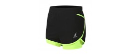 The compression layer built into these shorts supports your muscles to reduce fatigue and extend your endurance. These shorts permit free movement thanks to their outer construction, which works well during running activities, training sessions, and sports events.
